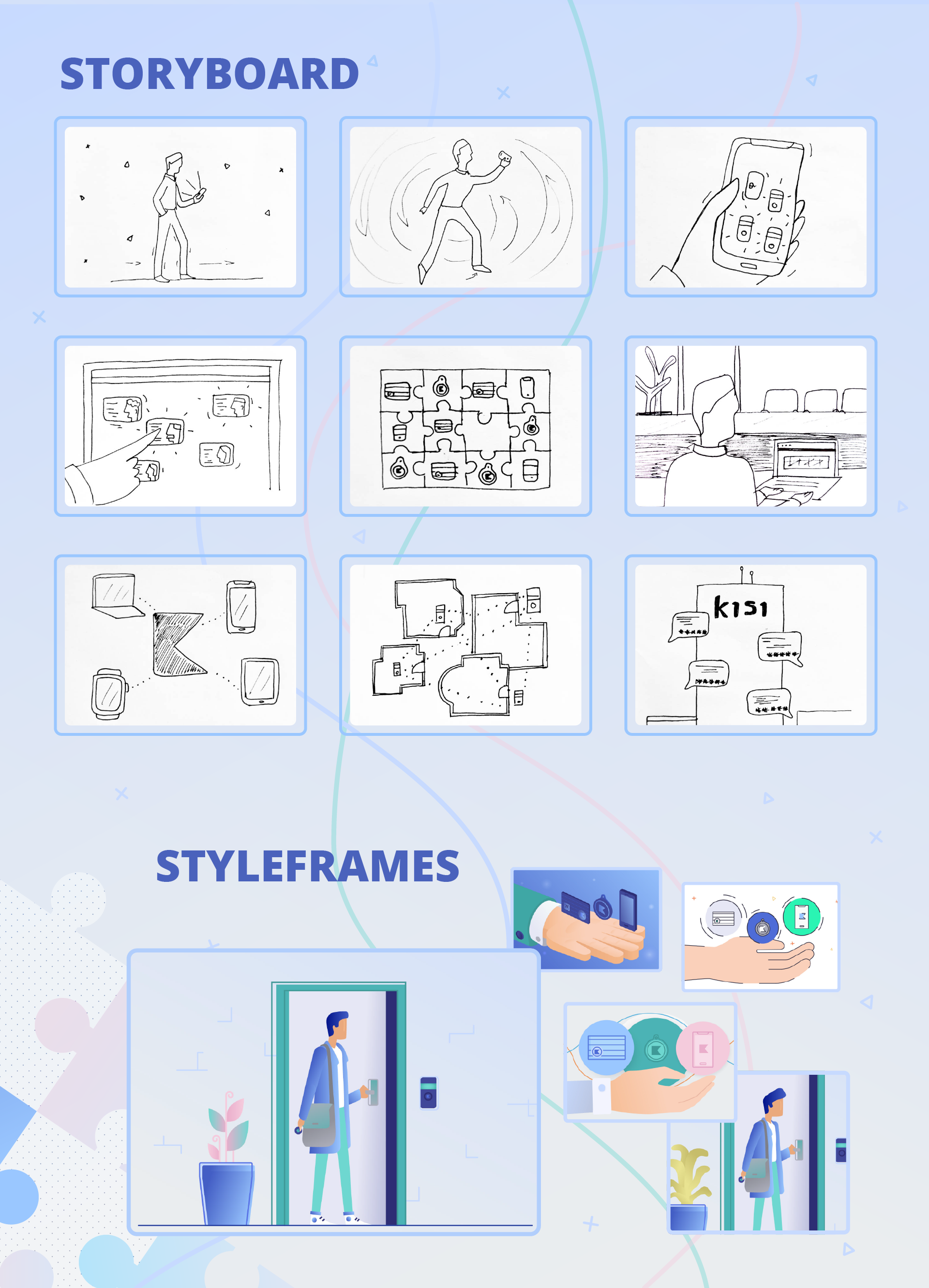 A 2D explainer video for Kisi, a cloud-based, keyless access control system. Character animation and vector graphics, custom designed.